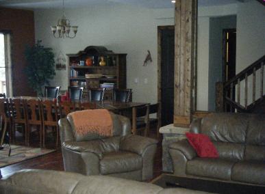![]() | Living room and Den with stone fireplace, 47" LCD TV, Leather | |